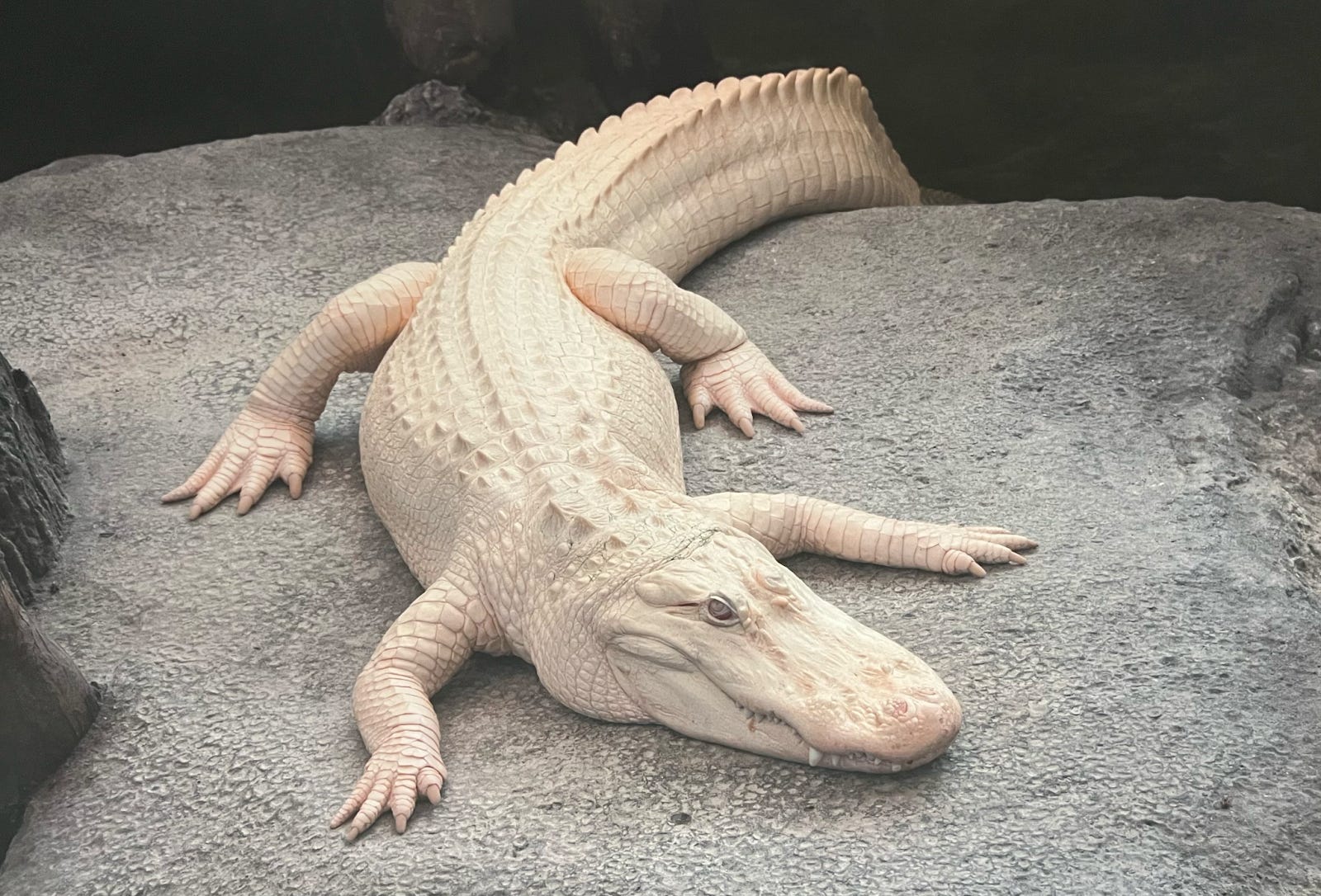 Hatched in Louisiana, Claude arrived at the California Academy of Sciences in 2008, after a stint at a zoo in St. Augustine, Florida. And while alligators in captivity can live up to 70 years, alligators with albinism like Claude rarely survive long. Considered a rarity, just 100 to 200 albino alligators are believed to live in the world. Given their poor eyesight and sensitivity to the sun, survival is precarious if not impossible.