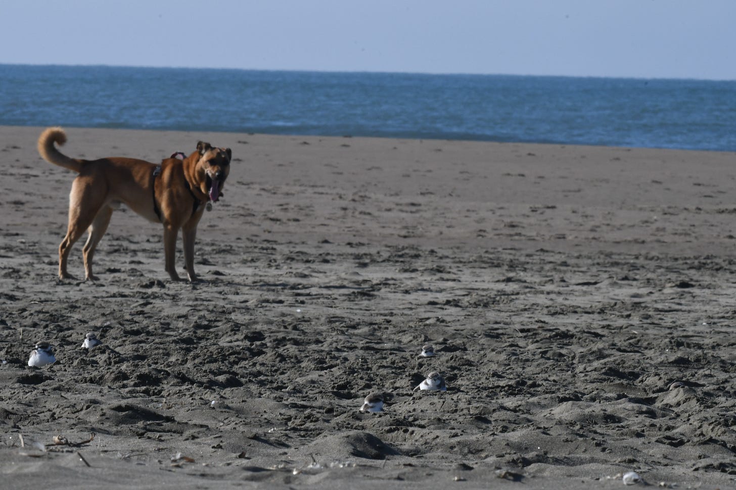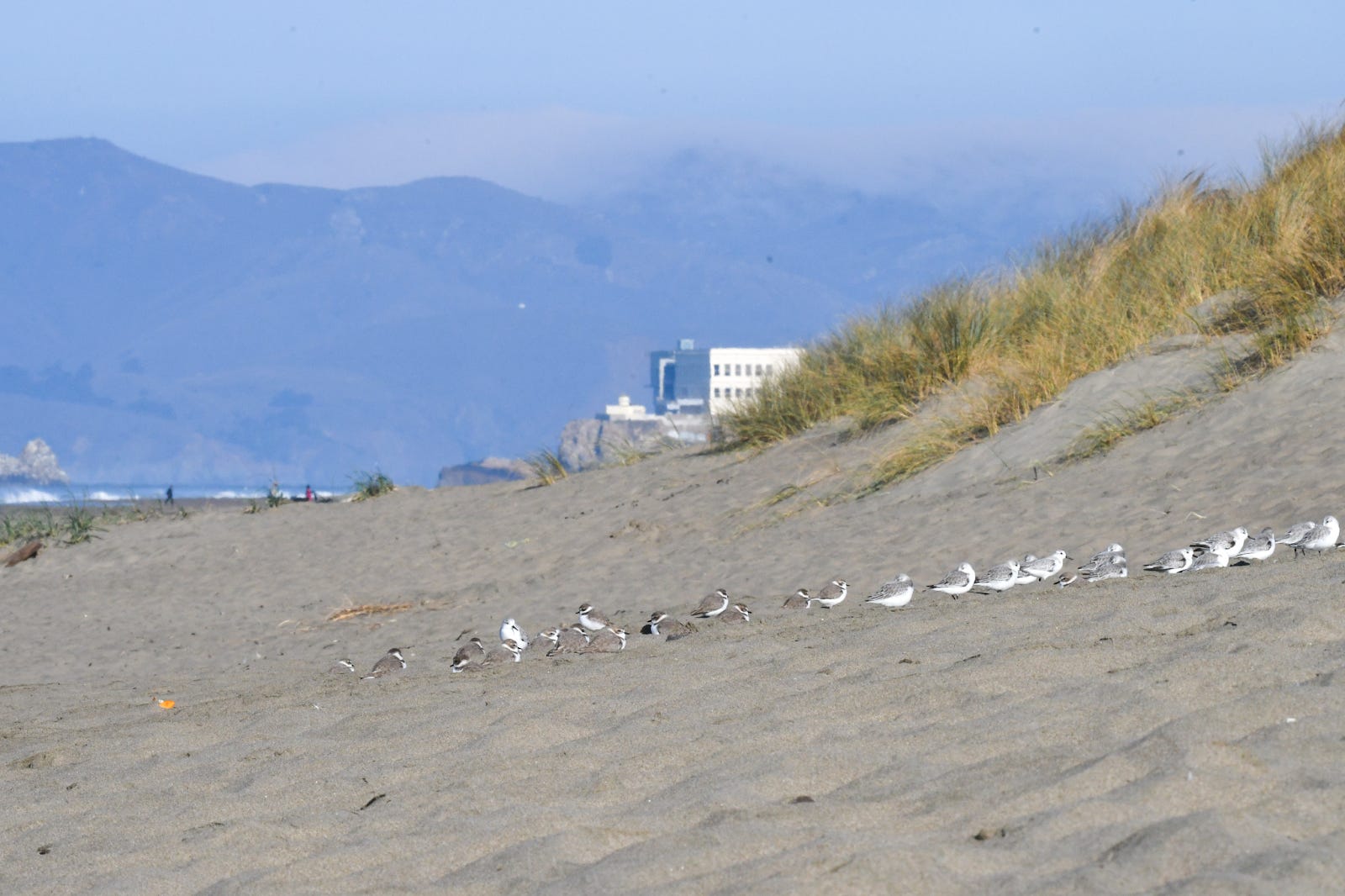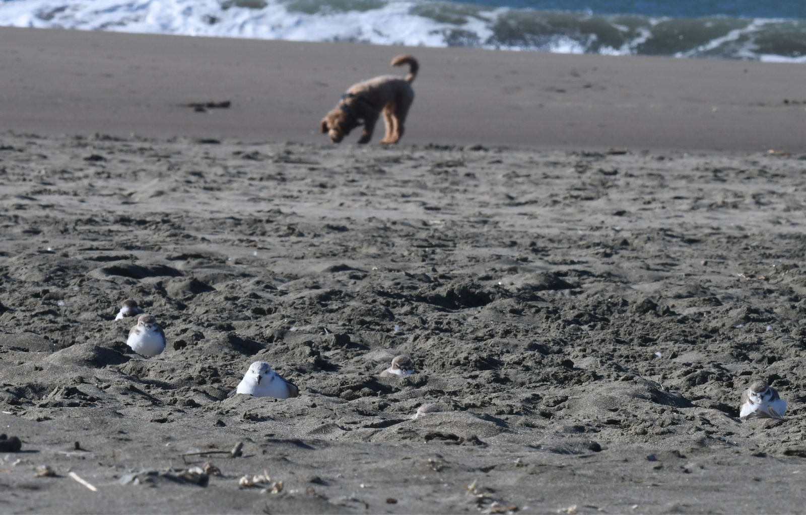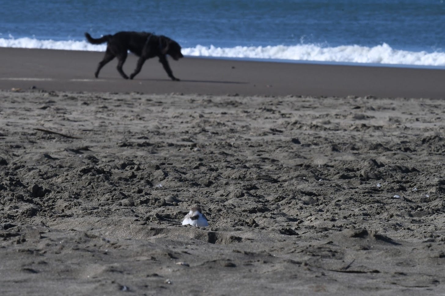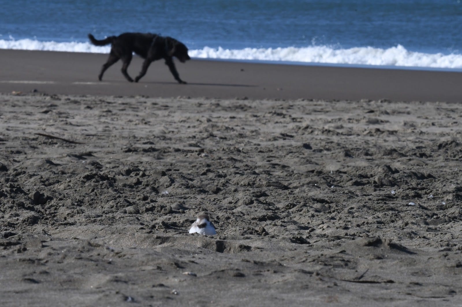 The next morning, I returned to Ocean Beach. As I was seated on the sand to take photos of the plovers from a distance, an off-leash dog barreled towards me and in the direction of the flock of roosting plovers near where I was sitting.