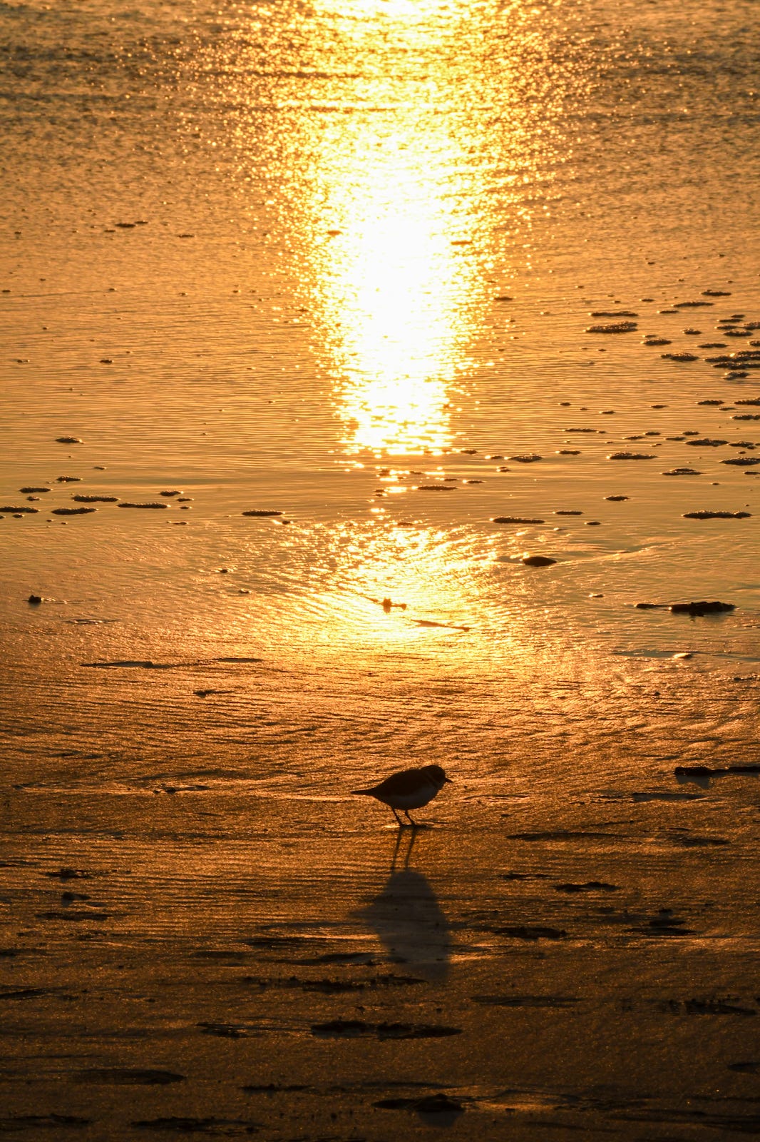 I lowered my camera from my face, and held the moment to take in the bird that I had come here to see. As the sun set, I crossed the beach towards the stairway up to the street. Plovers reluctantly rose like popcorn kernels from a hot pan, one by one, then walked away from me.