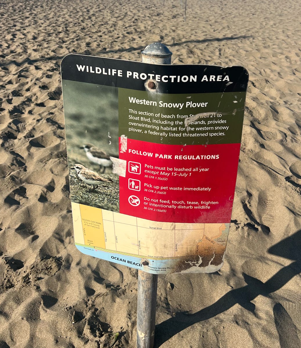 And while uproar ensued, a city already uneasy about big brother/big tech doesn’t seem to mind how another endangered San Franciscan is treated. Call it the power of the named animal or our love for cats and dogs, but the Western Snowy Plover, numbering fewer than 2,000, scurries to survive amongst unleashed dogs, e-bikes, joggers, and human indifference.