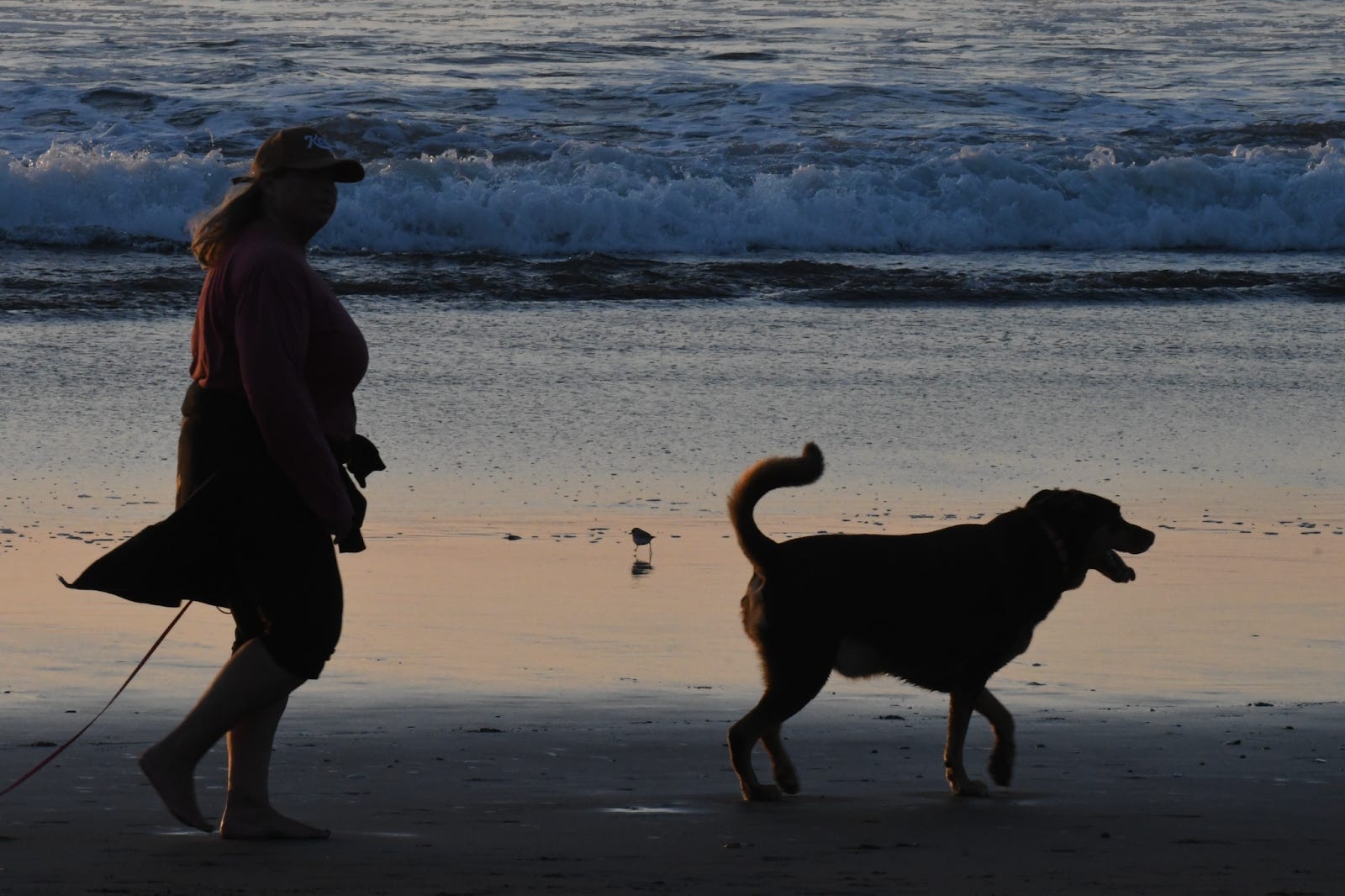 For some reason, I checked eBird after I arrived, a rookie move. One birder spotted them at their usual roosting location, which was in the opposite direction, 1.7 miles north. It was 4:17. I had half an hour if I was lucky. I hoofed it and just as the sun seemed to be a few inches above the ocean, A single Western Snowy Plover ran along the ripples of the water, where the dry sand met the wet. And then another just behind the first one. Run and stop, run and stop, just like the Piping Plover. Seeing the cousin to our plovers back east always gives me a rush. It’s not lost on me that alligators like Claude and plovers are closer relatives than us humans are to birds, descendants of dinosaurs, both hatching from eggs.